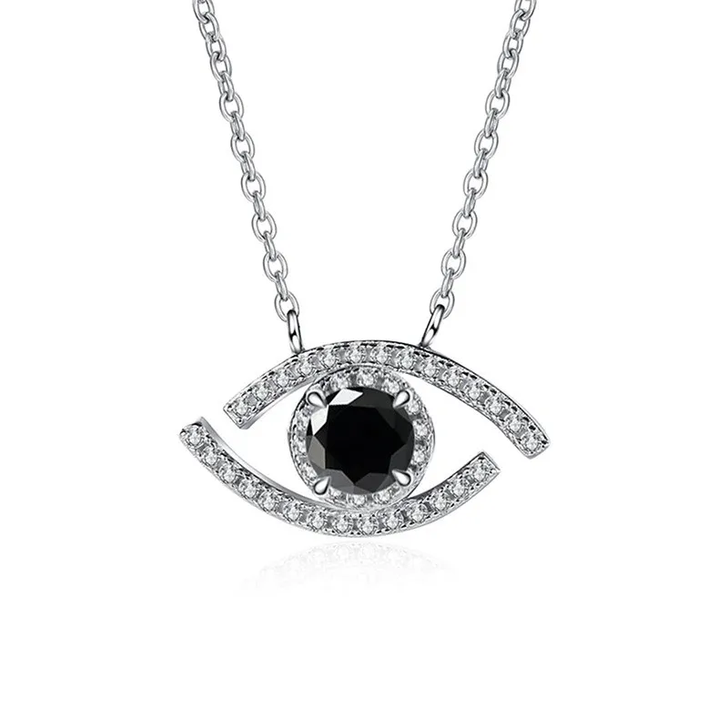 Wear a modern charm with an ancient symbol. Our Evil Eye Pendant Zirconia Black Eye blends elegance and empowerment so you can ward off negativity while elevating every outfit. The black evil eye symbolizes power and sophistication, making it your go-to for big presentations, important milestones, and unforgettable nights out. Think sleek zirconia sparkle resting at your collarbone, catching the light as you move. Meaningful style meets protection in a versatile pendant you can wear solo for minimal luxury or layer with delicate chains for a curated look.